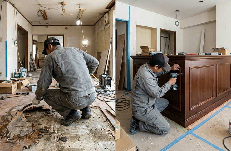 自社の職人が直接現場を見て、お客様のご要望をヒアリングするからこそ、「ここは原状回復の修繕ですね」「ここはグレードアップになるので資本的支出になりますね」と、プロの目線で作業を明確に切り分けることができます。