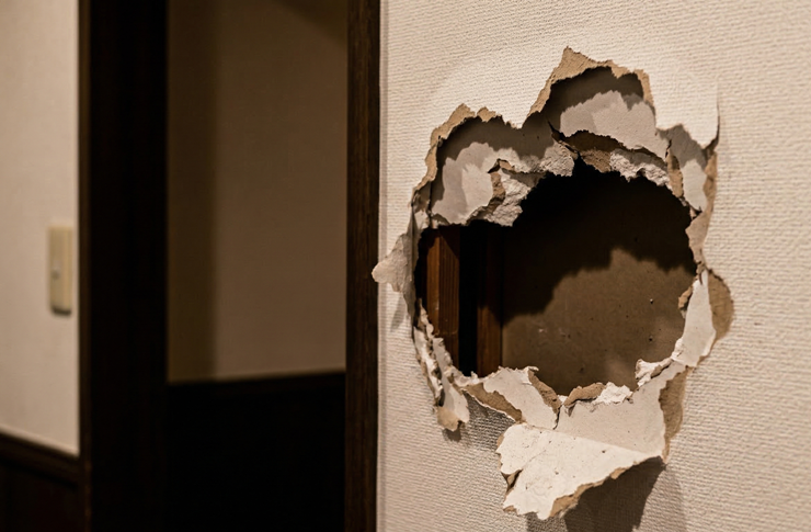 - 壁の大きな穴・破損: お客様の転倒や、ビールの搬入時に空いてしまった石膏ボードの穴を、下地から頑丈に作り直して何事もなかったかのように綺麗に復元します。