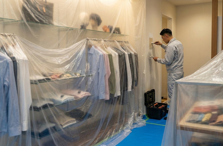 2. 大切な商品をホコリから守る「徹底した養生技術」